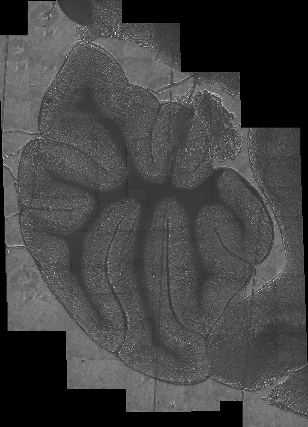 Reconstruction « grand champ » par corrélation de champs individuels d’une coupe sagittale de cortex de rat.