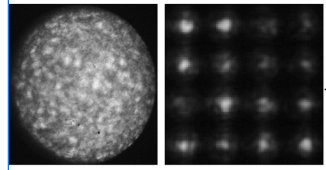 Les conséquences de ces phénomènes se manifestent visuellement dans la pupille qui présente des variations d’intensité notables, ainsi que sur les spots de l’analyseur de surface d’onde de type Shack-Hartmann. Le fonctionnement de l’analyseur Shack-Hartmann repose sur la focalisation des rayons lumineux issus de différents points de la pupille par l’intermédiaire de microlentilles qui forment une matrice, sur une caméra. Lorsque des aberrations sont présentes, les points de focalisation ou « spots » peuvent être décalés et/ou étalés, voire « éclatés » en plusieurs sous-parties) (spots « éclatés »). La conséquence est que cela impacte considérablement la capacité de correction par OA dans certaines circonstances, comme lorsque l’on travaille à des profondeurs trop importantes (au-delà de quelques centaines de microns).