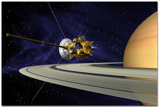 La mission Cassini–Huygens a été lancée le 15 octobre 1997. C’est une mission couplée NASA–ESA destinée à l’exploration de Saturne et de son environnement. Elle est entrée en orbite autour de Saturne le 1er juillet 2004.
