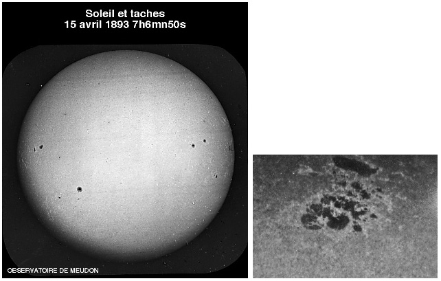 Clichés pris par Jules Janssen à la fin du XIXème siècle à Meudon avec la lunette d’imagerie solaire.