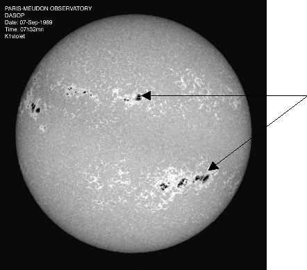 Le Soleil est la seule étoile du ciel pour laquelle, en raison de sa proximité, il est possible de voir les détails de sa surface. Rappelons que le diamètre du Soleil est de 1400000 km, et que les plus petits détails visibles dans les meilleurs télescopes font 100 km (ou 0.15 secondes de degré en valeur angulaire). Mais il s’agit là d’observations de détails, ce qui n’est pas la préoccupation des observations journalières du Soleil, qui concernent le disque solaire entier, avec une résolution plus modérée de l’ordre de 1000 km. Pourquoi observe t-on le Soleil régulièrement ? On a tout d’abord constaté que la surface du Soleil était en perpétuelle évolution, sur des échelles de temps courtes, pouvant varier de l’heure (cas des éruptions solaires) au mois (durée de vie des filaments et des taches) ; l’évolution des structures se présente d’un jour à l’autre de manière différente en raison de la rotation de l’étoile sur elle-même, qui varie de 26 jours à 31 jours de l’équateur aux pôles (le Soleil ne tourne pas comme un corps solide : sa rotation est différentielle, ce qui déforme les structures).