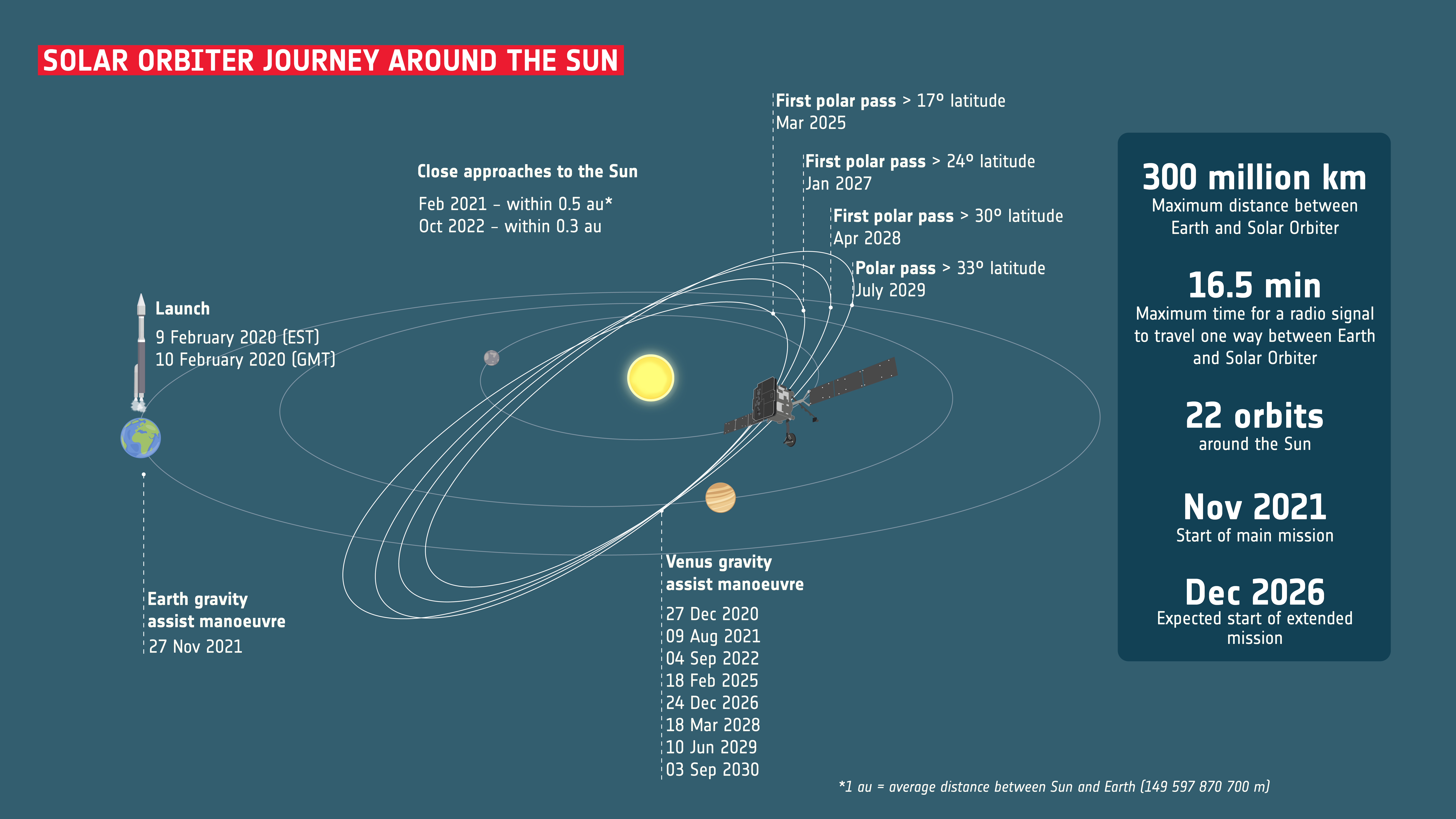 Initialement proposĂ©e en 1998 dans le programme « Horizon 2000 + » de l’ESA, puis sĂ©lectionnĂ©e en 2011 par le ComitĂ© des Programmes Scientifiques (SPC) comme la première mission moyenne dans le cadre « Cosmic Vision », la mission Solar Orbiter a Ă©tĂ© lancĂ©e le 10 fĂ©vrier 2020. Projet structurant d’un grand nombre de laboratoires de physique solaire et hĂ©liosphĂ©rique en Europe et au-delĂ , Solar Orbiter fĂ©dère l’ensemble des communautĂ©s SOHO et Ulysse dont elle regroupe les attentes scientifiques.