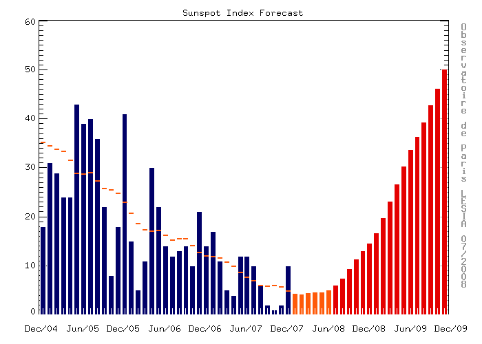 • Le cycle solaire Ă  long terme (prĂ©vision de l’indice des taches)