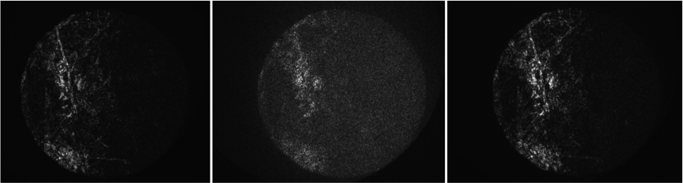 On peut ainsi constater sur une feuille de papier le gain apporté par l’optique adaptative sur des images OCT grâce à la correction des aberrations.