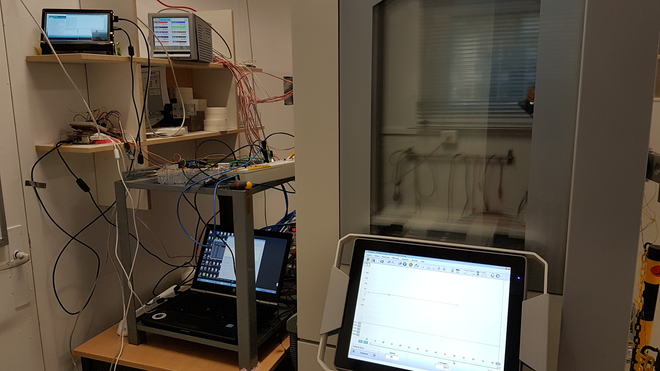Les tests de qualification thermique (cyclages de -25°C à +35°C en enceinte climatique) ont pour objectif de montrer que les senseurs XG1, XG2 et XG3 sont fonctionnels lorsqu’ils sont confrontés à un environnement en température proche de celui rencontré en vol lors de la mission TARANIS.