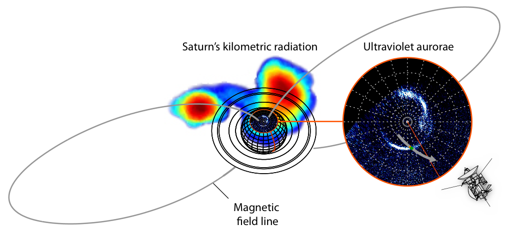 Lors du « Grand Finale », ultime phase de la mission Cassini, la sonde spatiale a exécuté des passages répétés à basse altitude au-dessus des pôles magnétiques, où le rayonnement radio auroral de Saturne prend naissance. En analysant les données in situ acquises par l’instrument radio [1] et le magnétomètre de la sonde, les auteurs de l’étude ont identifié les « sources » d’aurores radio lointaines, à environ 3 rayons planétaires (180 000 km) au-dessus de l’atmosphère. Ils ont pu ainsi caractériser les propriétés des ondes radio, de leur lieu d’émission et les confronter avec succès aux prédictions théoriques.