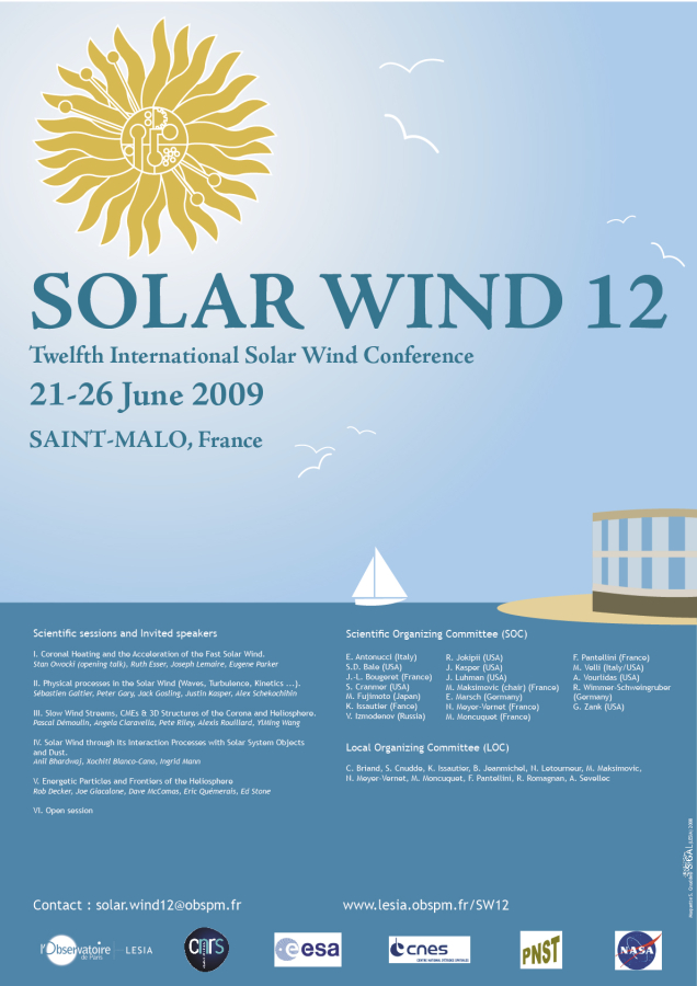 Le pôle "plasmas" du LESIA organise la prochaine conférence internationale "Solar Wind 12", au Palais du Grand Large à Saint-Malo, du 21 au 26 juin 2006.