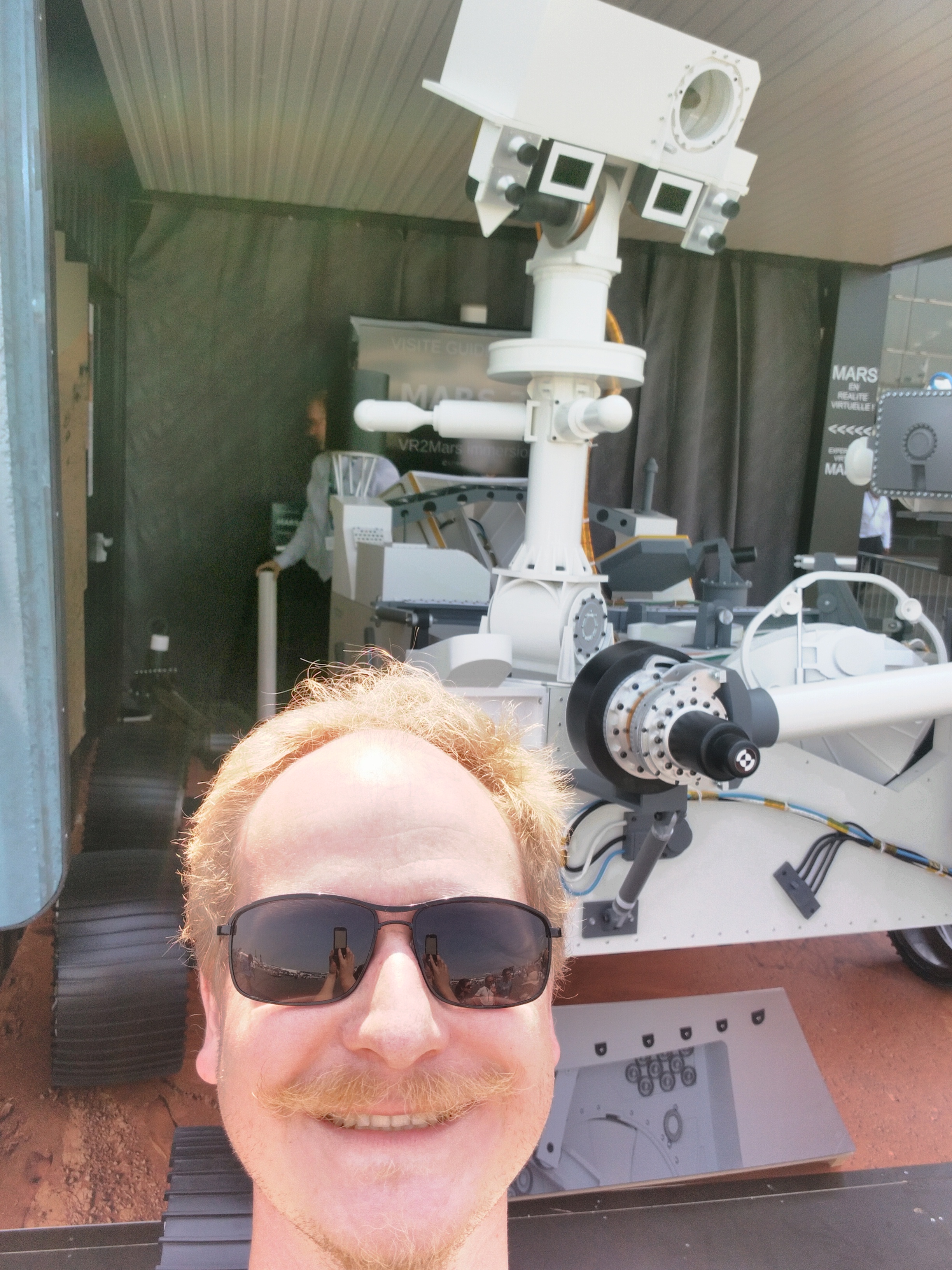 Cyrille est également impliqué dans le projet SuperCam puisqu’il arrive au moment où le spectromètre infrarouge IRS, (Infra Red Spectrometer), en grande partie réalisé dans notre laboratoire, intégrait SuperCam, la tête optique du rover martien Perseverance. L’objectif d’IRS est d’analyser des spectres de roches possiblement issues du vivant dont certains carbonates. La livraison du premier modèle de vol à l’IRAP (Institut de Recherche en Astrophysique et Planétologie) de Toulouse est effective en mars 2018. Quant au modèle de vol définitif, suite à un accident d’assemblage à Toulouse qui a occasionné beaucoup de stress à l’équipe, il est livré fin mai 2019. Puis c’est la livraison finale au JPL (Jet Propulsion Laboratory) de la NASA en juin 2019 pour intégration sur Perseverance. Il est important de préciser que SuperCam a été qualifié au LESIA et lancé le 30 juillet 2020. Cyrille était chargé des MGSE (Mechanical Ground Support Equipment) des supports mécaniques qui permettent de tester le matériel au sol pour qu’il corresponde aux normes du spatial ainsi que les essais vide/thermiques TVT ou TVAC. Pour ses premiers pas chez nous, une épopée pleine de rebondissements mais couronnée de succès puisque Perseverance est arrivé sur Mars le 18 février 2021.