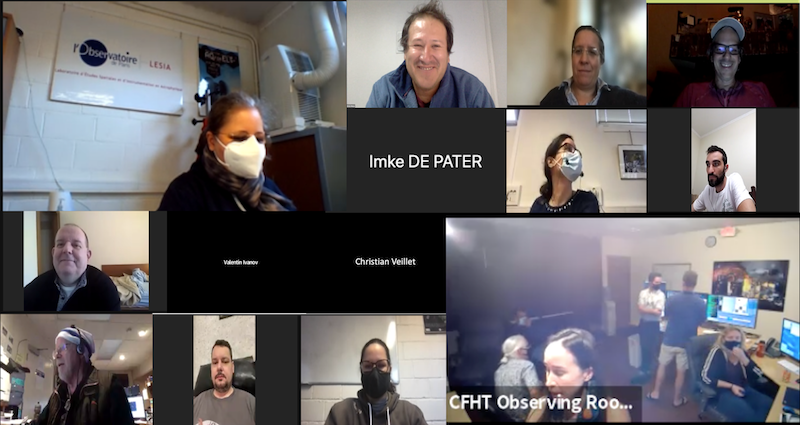 D. Souami (LESIA, Observatoire de Paris, France), E. Meza (Observatorio Astronómico de Moquegua, Pérou) ; M. Langlois (Université de Lyon, France), C. Hergenrother (Arizona, USA) ; I. De Pater from UC Berkley California, USA ; J. Marques-Oliveira (LESIA, Observatoire de Paris, France) ; G. Benedetti-Rossi (São Paulo State University, Brésil) ; P. Garbor (Rome, Italie) ; V. Ivanov (ESO München, Allemagne), CFHT Observing Room (toute l’équipe du CFH, à Mauna Kea, Hawaii) ; C. Veillet _Large Binocular Telescope Observatory- LBTO, AZ, USA), R. P. Boyle, (The Vatican Advanced Technology Telescope - VATT, AZ, USA) ; R. Sfair from São Paulo State University, Brésil ; T. Santana (LESIA, Observatoire de Paris, France).