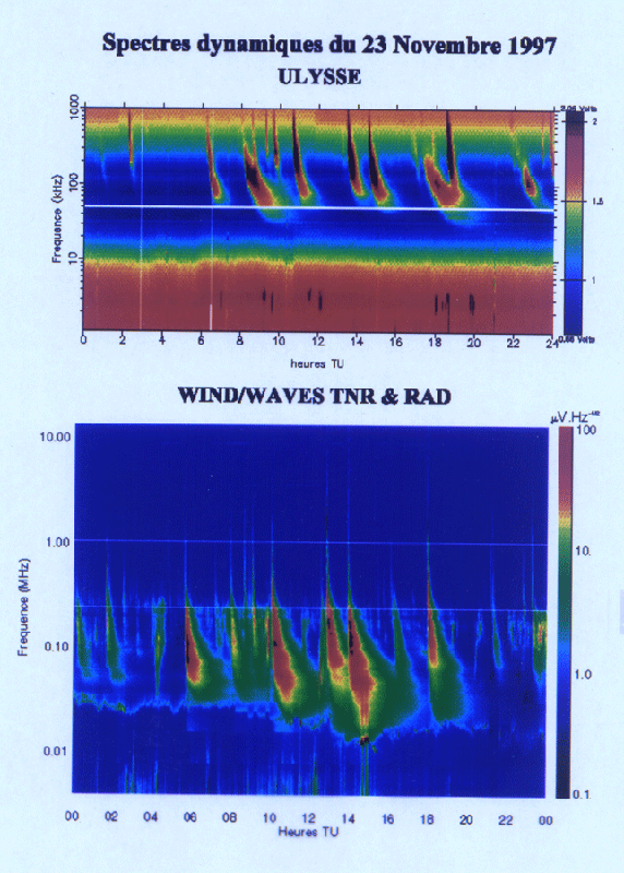 Quelques mots sur WIND lancé en 1994 : il emporte le récepteur le plus perfectionné construit au labo sous la responsabilité scientifique de Jean-Louis Bougeret et technique de Bob Manning ; il couvre tout le spectre depuis les plus basses fréquences jusqu’à celles qui sont quelquefois reçues au sol à Nançay.