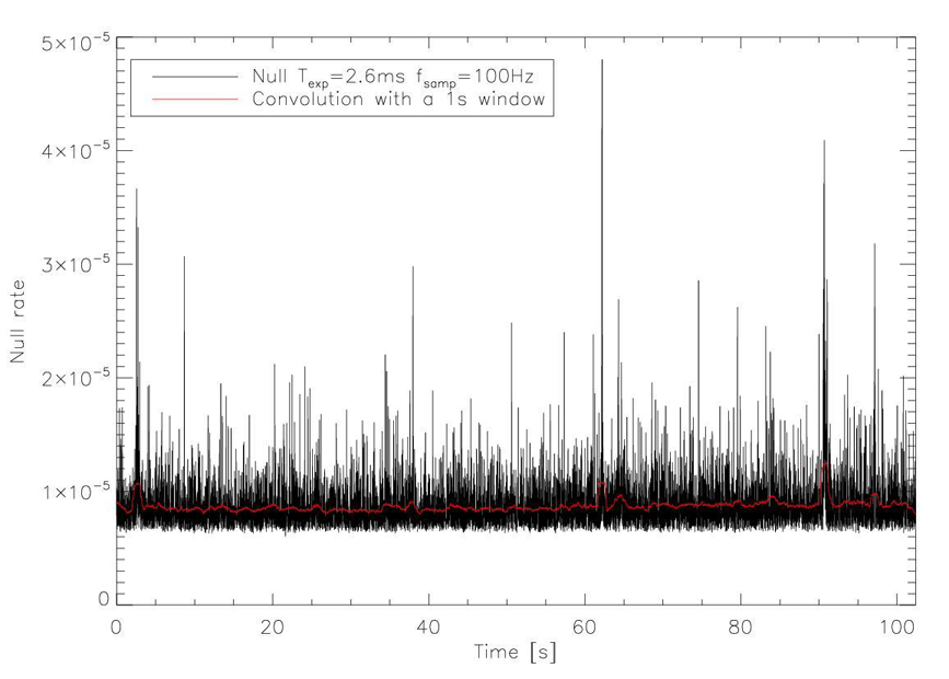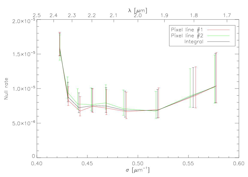 Les derniers résultats sont au-delà de nos espérances, car nous avons atteint un taux d’extinction de 8,7.10-6, avec une stabilité de 5.10-7 sur 100s. Ce résultat est le meilleur taux d’extinction polychromatique sur une bande aussi large jamais atteint par un banc d’interférométrie.