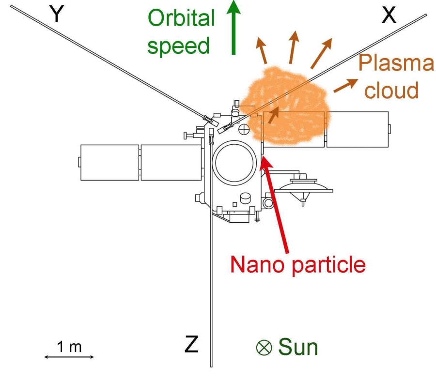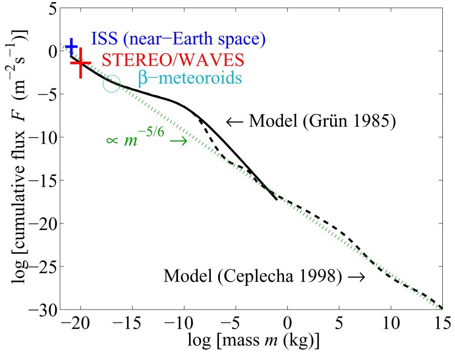 Cette signature électrique était bien connue pour avoir été mesurée à bord de plusieurs sondes spatiales, notamment dans les anneaux de poussières des planètes Saturne, Uranus et Neptune, et près de la comète de Halley, où elle est produite par des micropoussières percutant la sonde spatiale à plusieurs dizaines de kilomètres pour seconde. Mais dans le milieu interplanétaire, ces micropoussières sont beaucoup trop rares pour expliquer les nombreux impacts observés sur STEREO. Par contre ces mesures sont en accord avec le flux de nanoparticules prévu par les modèles de poussières interplanétaires, qui augmente lorsque la masse diminue (Figure 3).