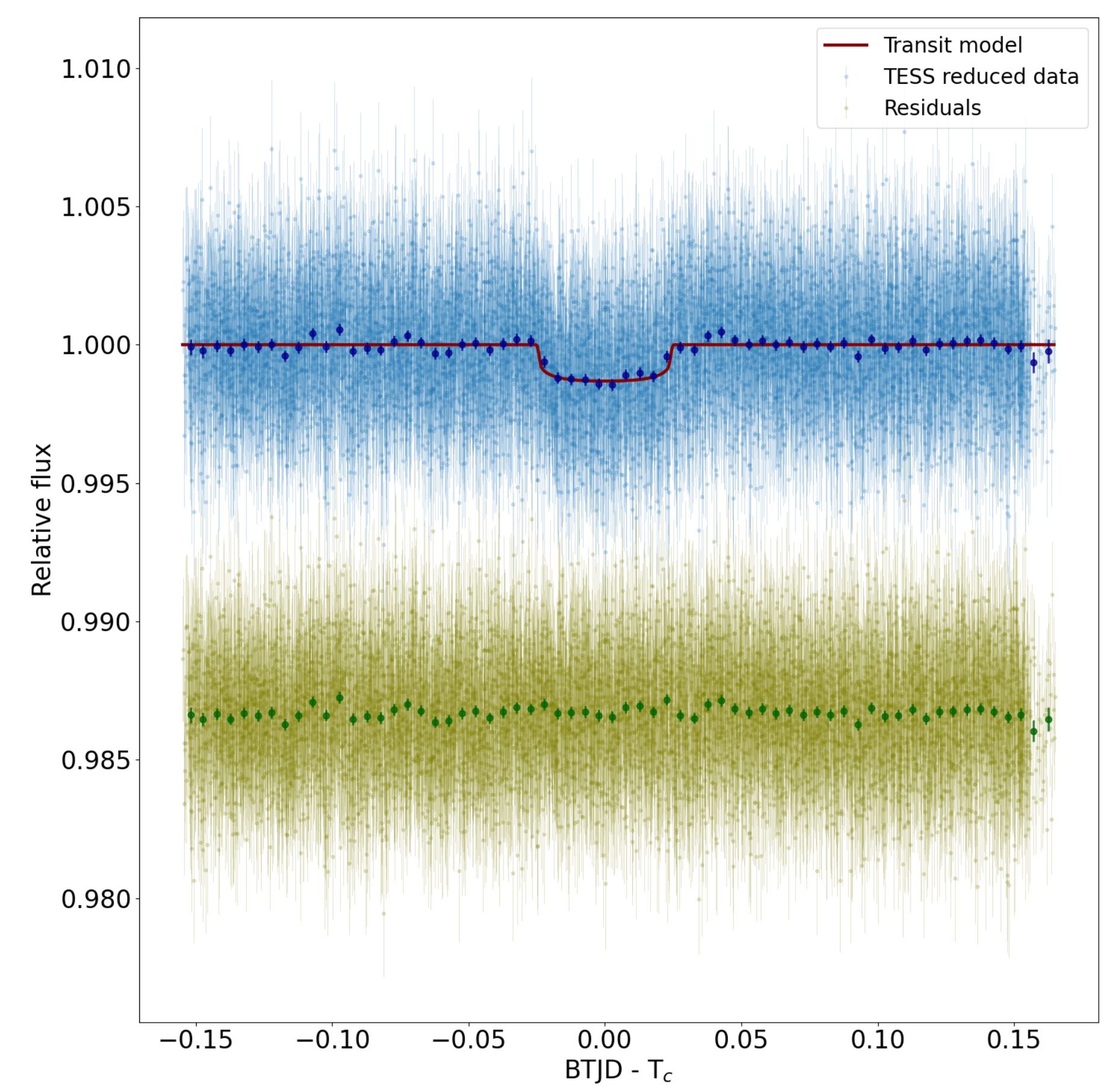 Courbe de variation de luminosité de TOI-1695 détectée par TESS au passage de l’exoplanète devant l’étoile.