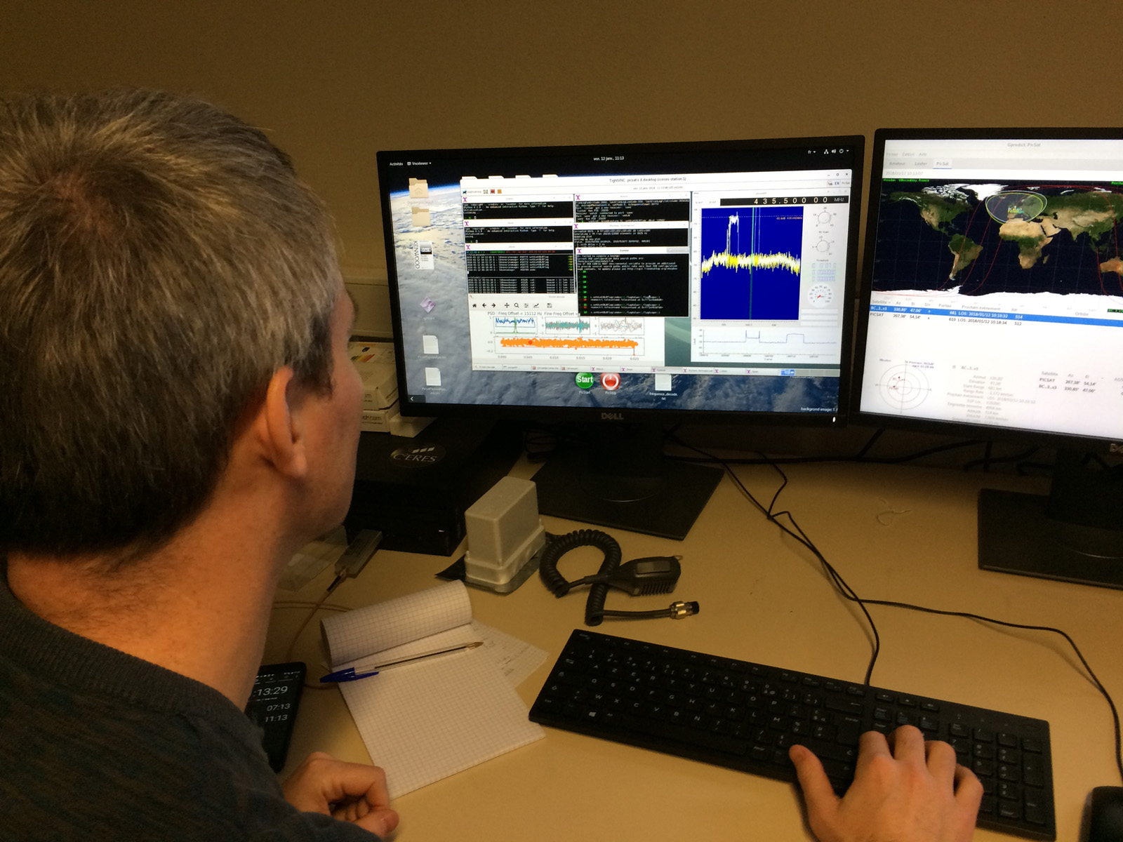 Ce vendredi matin, l’équipe autour de S. Lacour et V. Lapeyrère a pu recevoir les signaux émis régulièrement par le nanosatellite au cours de ses trois premiers passages au-dessus de Meudon. Un premier dialogue a même pu être établi. La mise en oeuvre de cette communication avec le nanosatellite, qui s’effectue directement depuis Meudon, est ainsi une première pour le LESIA.