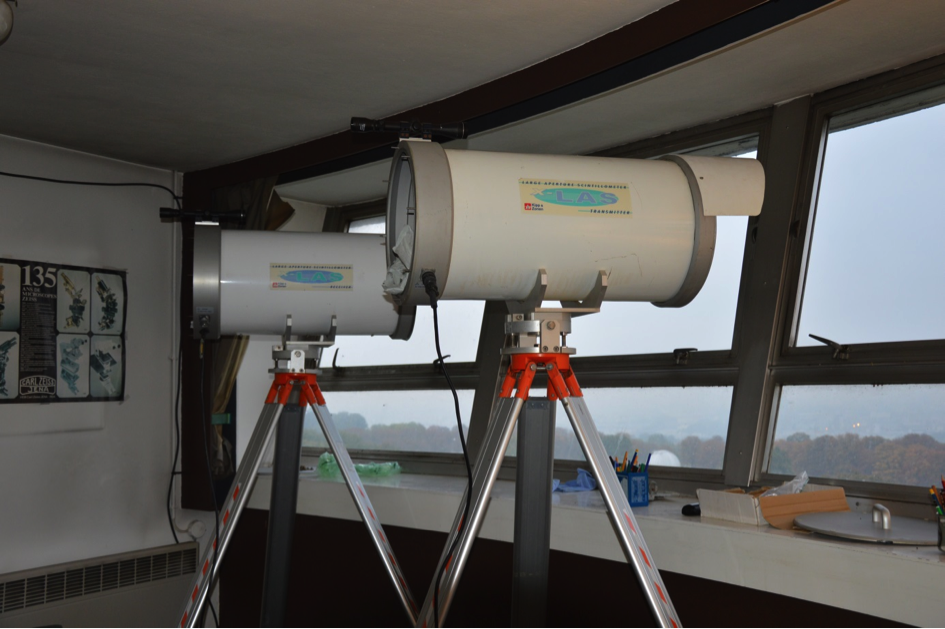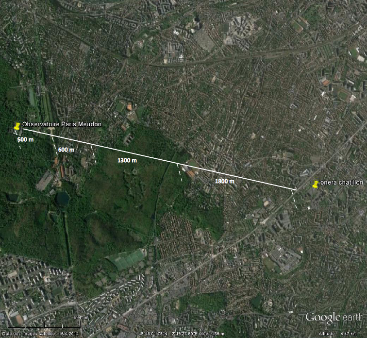 La Tour Solaire de l’Observatoire de Meudon a récemment été utilisée par une équipe du DOTA de l’ONERA pour deux campagnes expérimentales de scintillométrie urbaine. Réalisées sur une ligne de visée à 40 m du sol entre l’ONERA- Châtillon et la Tour Solaire de l’Observatoire de Meudon (soit 4,2 km), ces campagnes étaient menées par Clélia Robert (DOTA ONERA), en collaboration avec l’INRA (Institut National de la Recherche Agronomique) et le LTHE (Laboratoire d’étude des Transferts en Hydrologie et Environnement). Le service MESPAL du LESIA s’est occupé de l’accueil de l’équipe ainsi que de son installation à la Tour Solaire.