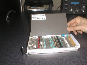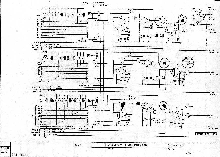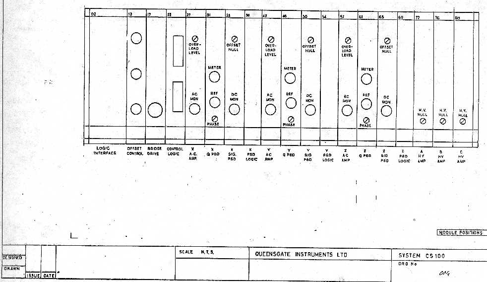 The Fabry-Perot (FP) controller used for GriF is the MOS/FP Queensgate CS100, bought at the beginning of the 80’s. This controller was a special order that had, built in, a smaller digital scanning range (typically 0.5 microns of displacement for the 4096 binary values range) than other controllers. When observing in 1996, B. E. Woodgate pointed out that he could not scan the same range as with his FP controller. Following the advice of P. Pietraszwski (Queensgate), CFH has implemented a small modification of the CS100 allowing a standard (and the larger) range of scanning. It consist in changing the resistor R17 on the offset controller module from its original (reduced) value (195k) to 50k (see figures below).
