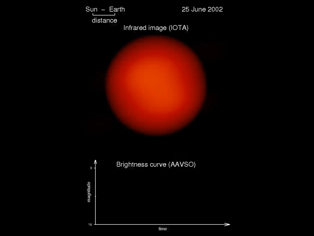 Oscillation de l’étoile Chi Cygni, vue par l’interféromètre IOTA, qui était situé à l’observatoire du Mont Wilson en Californie