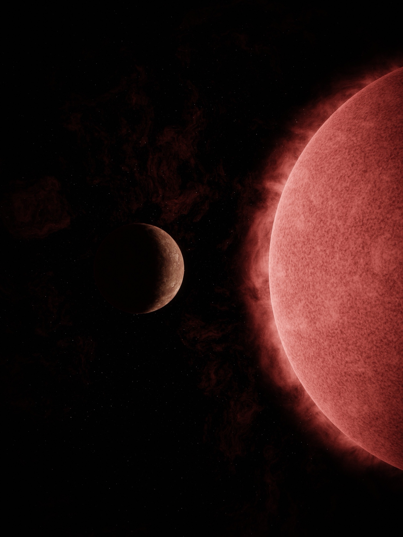 L’exoplanète SPECULOOS-3 b se trouve à environ 55 années-lumière de la Terre (ce qui est très proche à l’échelle cosmique ! Ainsi, notre galaxie, la Voie Lactée, s’étire sur 100,000 années-lumière). Elle a pratiquement la même taille que notre planète. Une année, c’est-à-dire une orbite autour de l’étoile, dure environ 17 heures. Les jours et les nuits, en revanche, ne se terminent peut-être jamais : on pense que la planète est en rotation synchrone, de sorte que le même côté, appelé côté jour, fait toujours face à l’étoile, comme la Lune pour la Terre. Le côté nuit serait enfermé dans une obscurité sans fin.