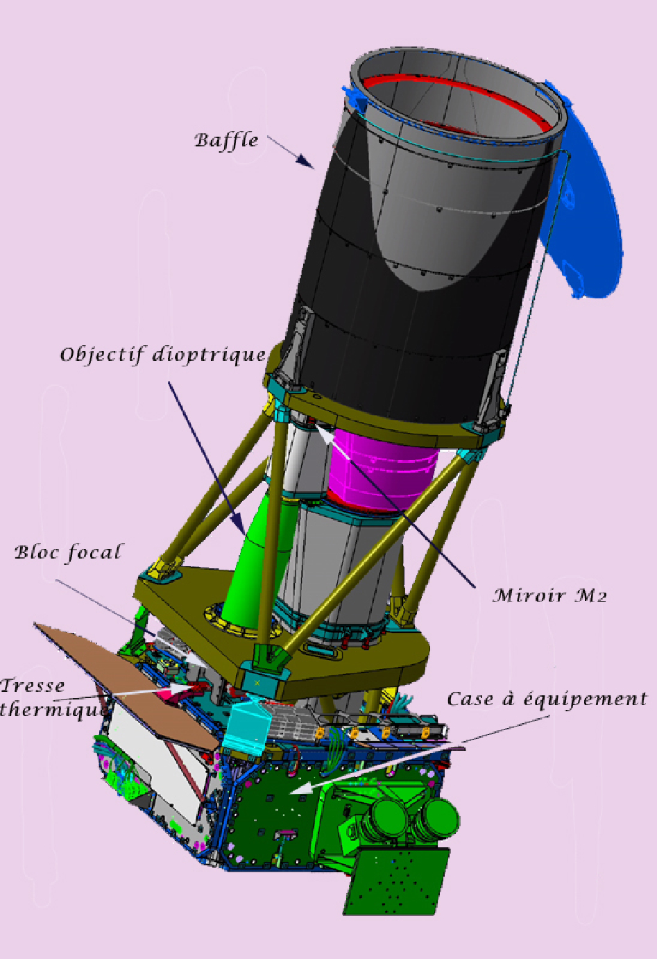 L’instrument est composĂ© d’un tĂ©lescope (collecteur afocal Ă 2 miroirs hors d’axe), d’une camĂ©ra grand champ fonctionnant dans le visible, d’une case Ă Ă©quipements (Ă©lectroniques analogiques et numĂ©riques) et d’un logiciel de vol en charge des traitements de photomĂ©trie d’ouverture, de la fourniture Ă la plate-forme de donnĂ©es d’écartomĂ©trie (mode de pointage fin) et de la gestion des tĂ©lĂ©commande et tĂ©lĂ©mĂ©trie.