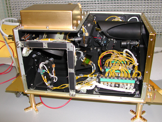 La plaque supĂ©rieure est le radiateur de l’instrument (crĂ©dits : VIRTIS team)