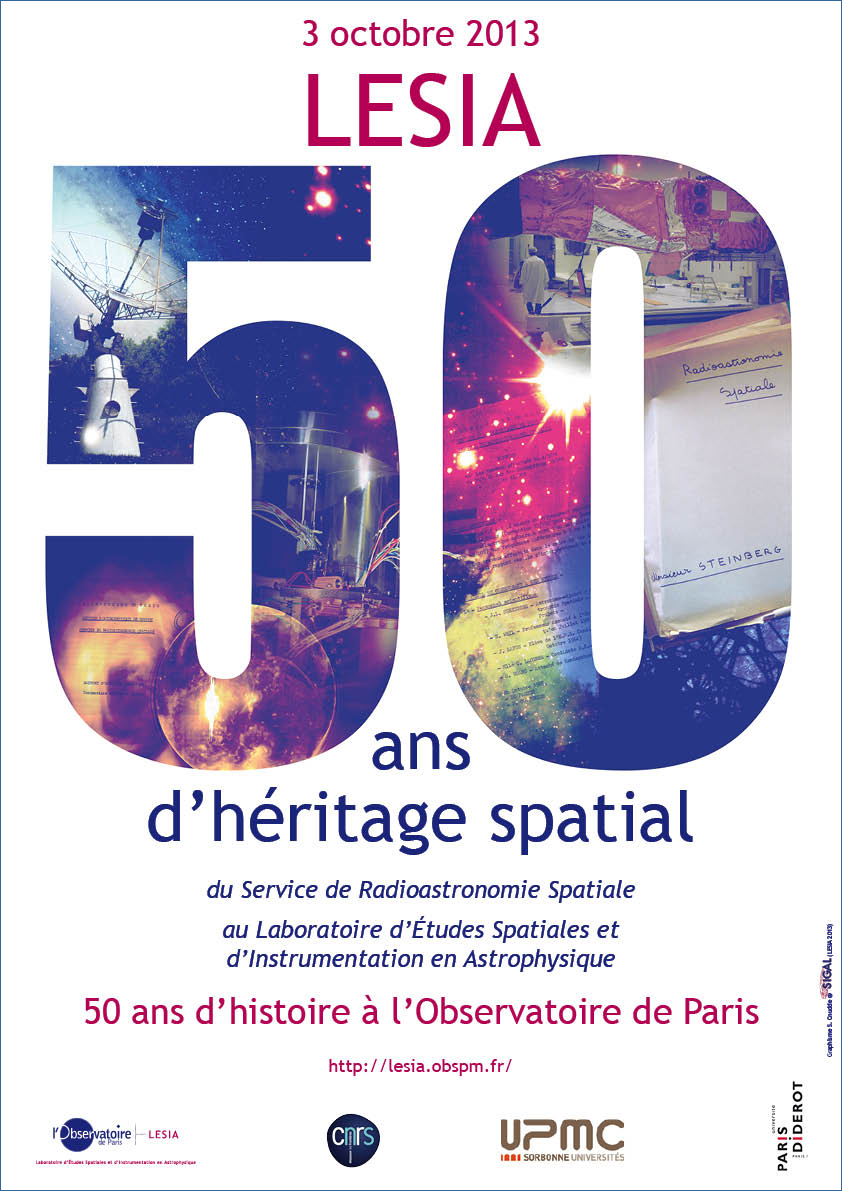 Le 3 octobre 2013, le LESIA célèbrera le cinquantenaire du Service de Radioastronomie Spatiale de l’Observatoire de Paris. Cette célébration aura lieu dans l’amphithéâtre Evry Schatzman, sur le site de Meudon.