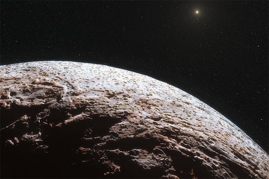 L’exploration des objets primordiaux qui évoluent au-delà de Neptune, dans la ceinture de Kuiper, se poursuit. La traque des lointaines planètes naines, résidus de la formation du Système solaire, continue… Dans la nuit du 23 avril 2011, à la faveur d’une conjonction céleste rare, calculée à l’avance par les spécialistes, Makemake (prononcer « Makémaké ») est passée devant une faible étoile de la constellation de la Chevelure de Bérénice. L’événement a été suivi par 16 télescopes soigneusement répartis dans 4 pays d’Amérique du Sud (Brésil, Uruguay, Argentine, Chili). Parmi eux, sept ont enregistré l’extinction, pendant plus d’une minute, de la lumière de l’étoile d’arrière-plan. Pour la première fois, de grands instruments astronomiques - le Very Large Telescope VLT (Paranal) et le New Technology Telescope NTT (La Silla) de l’Observatoire Européen Austral ESO, au Chili - ont pu observer le phénomène. La revue Nature du jeudi 22 novembre 2012 publie les résultats.