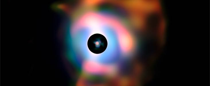 Ces nouveaux résultats montrent que les panaches observés à proximité de l’étoile sont probablement reliés à la nébuleuse externe imagée avec l’instrument VISIR. La nebuleuse n’est pas observable en lumière visible, mais elle est constituée de poussières chauffées qui émettent du rayonnement aux longueurs d’onde infrarouge (les mêmes que celles utilisées pour mesurer les fuites thermiques des bâtiments). La forme irrégulière et asymétrique de la nébuleuse indique que l’étoile n’a pas perdu sa matière d’une manière symétrique. Les bulles de matière stellaire et les panaches géants situés à leur base sont probablement responsables de l’aspect fragmenté de la nébuleuse.