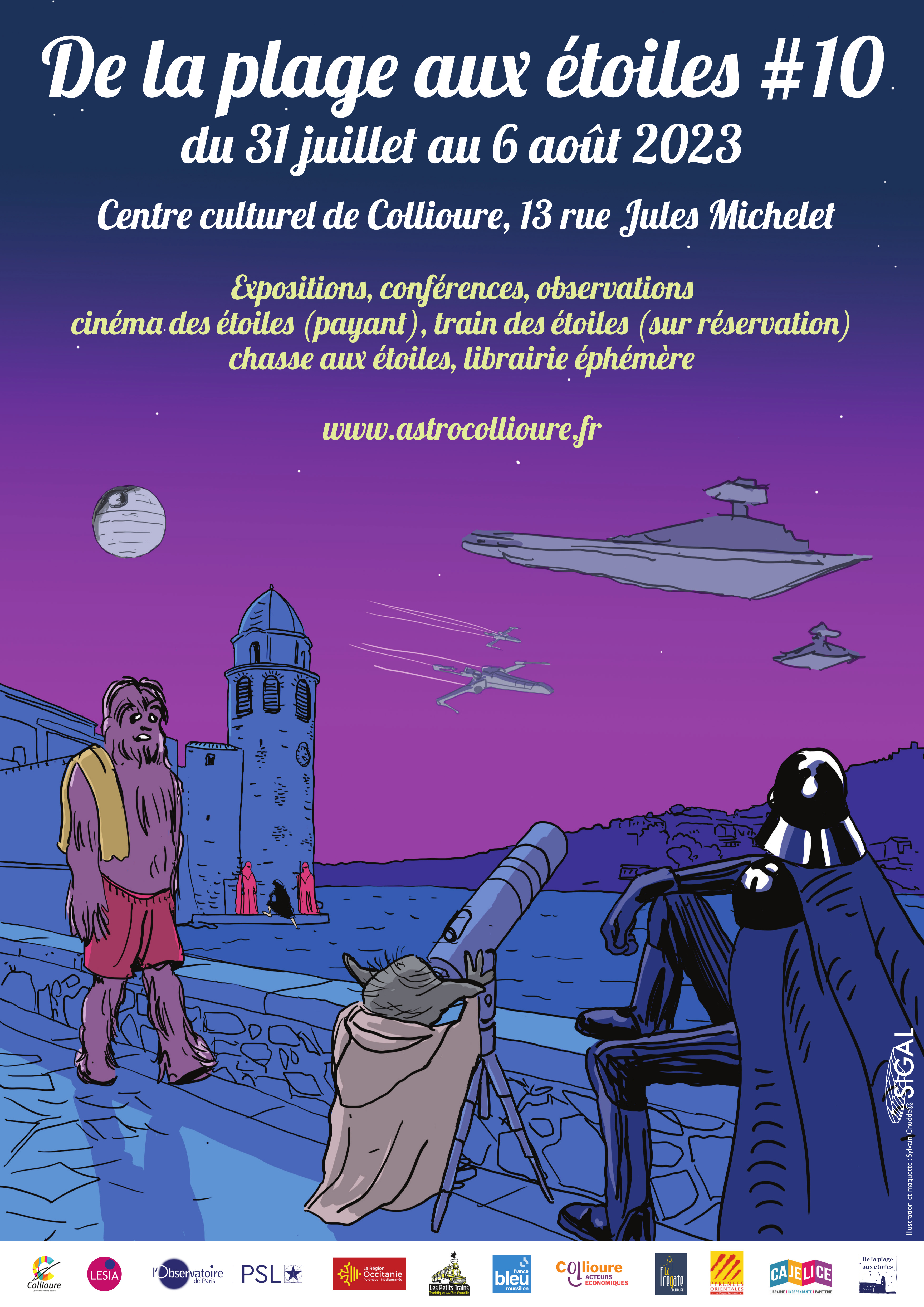 Comme si cela n’était pas encore assez, découvrons à présent un autre volet important de l’activité de Miguel : la vulgarisation scientifique. Toujours très lié à sa région d’origine, en 2011, il fonde le « Festival d’astrophysique de Collioure » avec Mélody Sylvestre, également étudiante au LESIA, et Pierre Fédou, alors ingénieur de recherche dans notre laboratoire. Sur 3 jours au départ, 3 conférences et une exposition de l’Observatoire pour diffuser le savoir dans le domaine et rompre l’isolement dont il avait souffert dans sa petite ville d’origine. Il implique également le club astro de la commune voisine du Soler qui est venu faire les observations à Collioure, pour le festival, de 2011 à 2018.