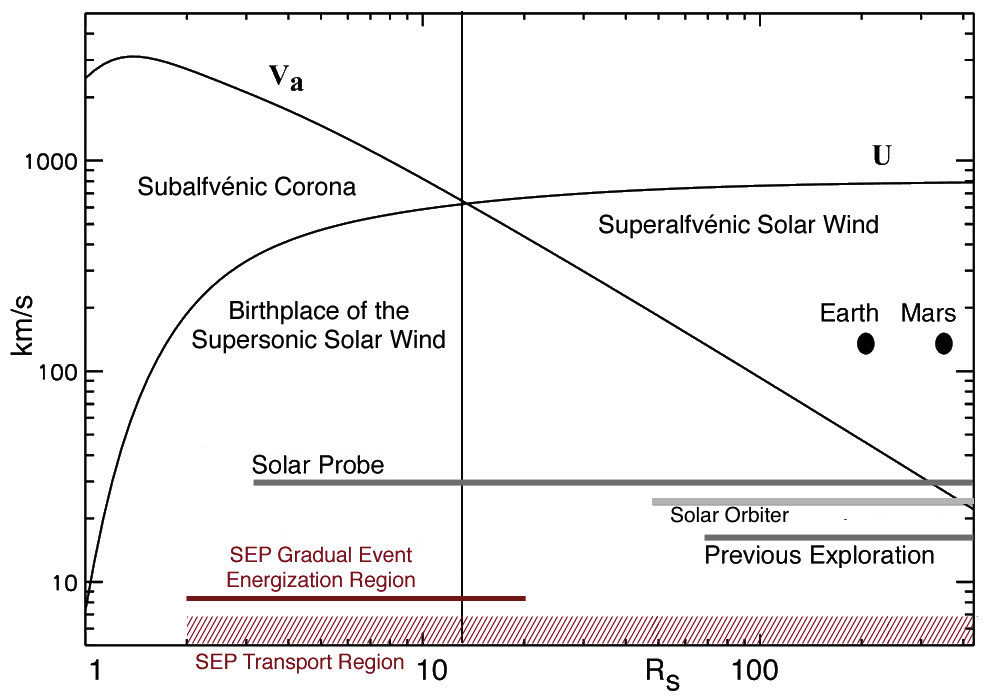 Parker Solar Probe est ainsi une mission pionnière de la NASA, officiellement sélectionnée depuis le 2 septembre 2010 , et qui explorera pour la première fois la proche couronne solaire, jusqu’à 9.5R⊙, à comparer avec les 60R⊙ d’approche maximale de Solar Orbiter (ESA-Cosmic Vision) ou des sondes Helios (RFA-NASA) dans les années 70. Notons à cet égard que, d’une part, les résultats d’Helios sont les seules mesures in situ « proches » dont on dispose à l’heure actuelle, et ont été largement utilisés pour définir, par extrapolation, les domaines d’investigation de PSP et, d’autre part, une grande synergie scientifique existe entre PSP et Solar Orbiter.