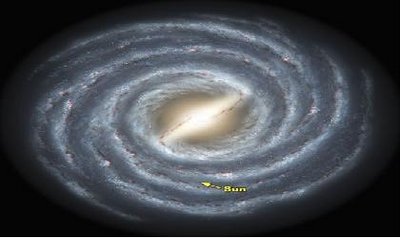Vue d’artiste de notre galaxie établie à partir des grands relevés infra-rouges (Spitzer Space Telescope). Crédit : R. Hurt, NASA.
