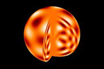 Illustration des perturbations (par exemple de température) engendrées par l’oscillation à l’intérieur d’une étoile. A la surface, ces perturbations engendrent une variation du flux lumineux émis par l’étoile. Crédit : E. Michel