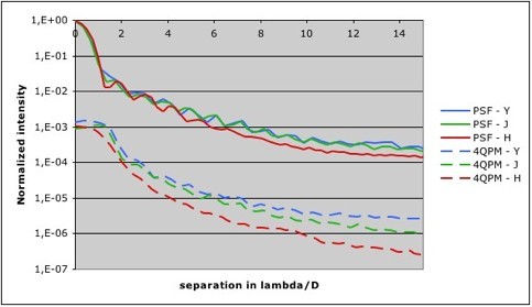 Pour atteindre ces objectifs l’instrument doit atteindre des contrastes de 15 Ă 16 magnitudes (par rapport Ă l’Ă©toile centrale) sur un petit champ (0.1" Ă 3") et cela pour des Ă©toiles de magnitude infĂ©rieure Ă 10.