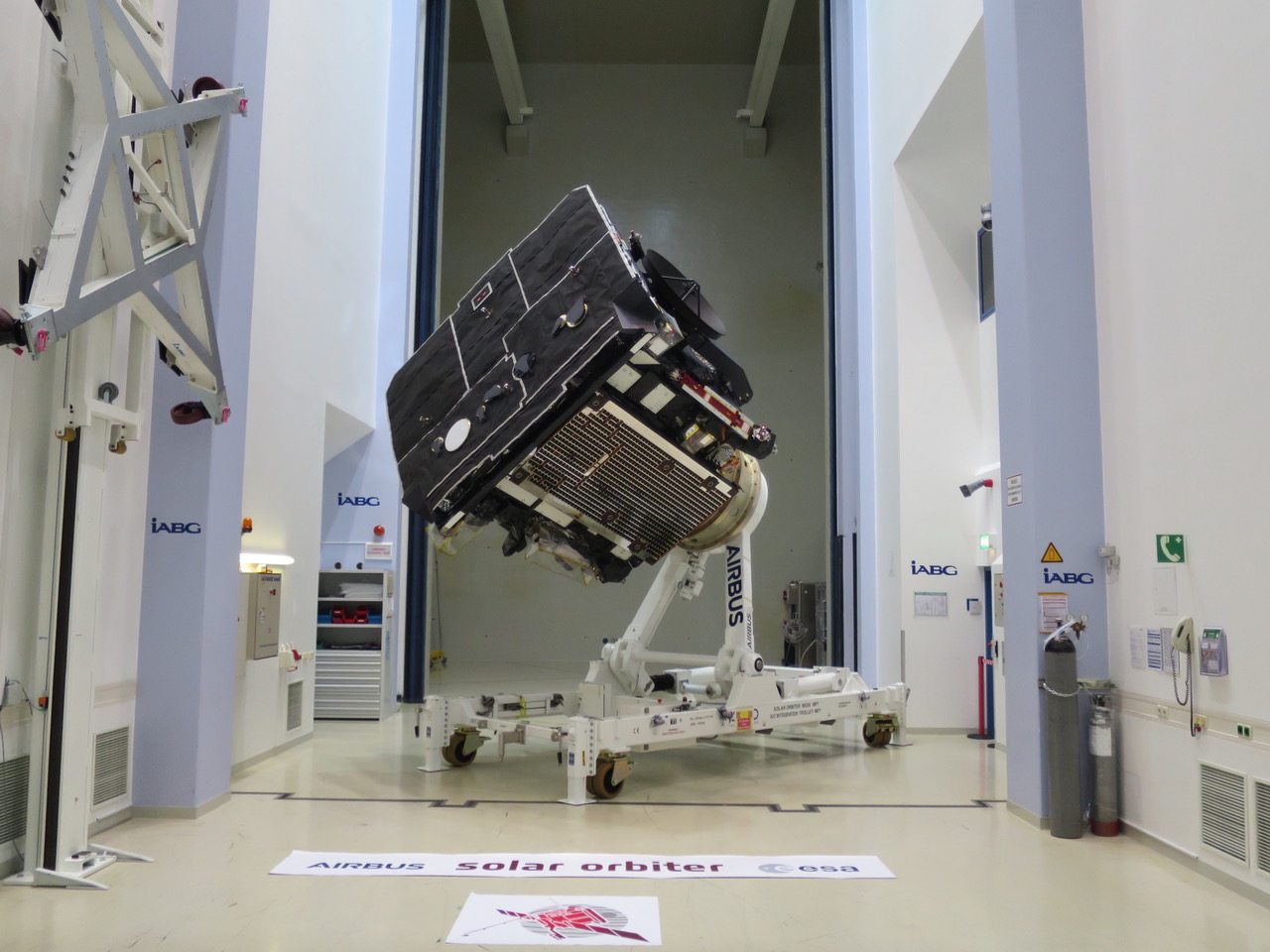 La mission Solar Orbiter de l’ESA a terminé sa campagne d’essais en Europe. Le 17 octobre 2019, la sonde a été exposée pour la dernière fois en Europe, au centre de tests IABG.