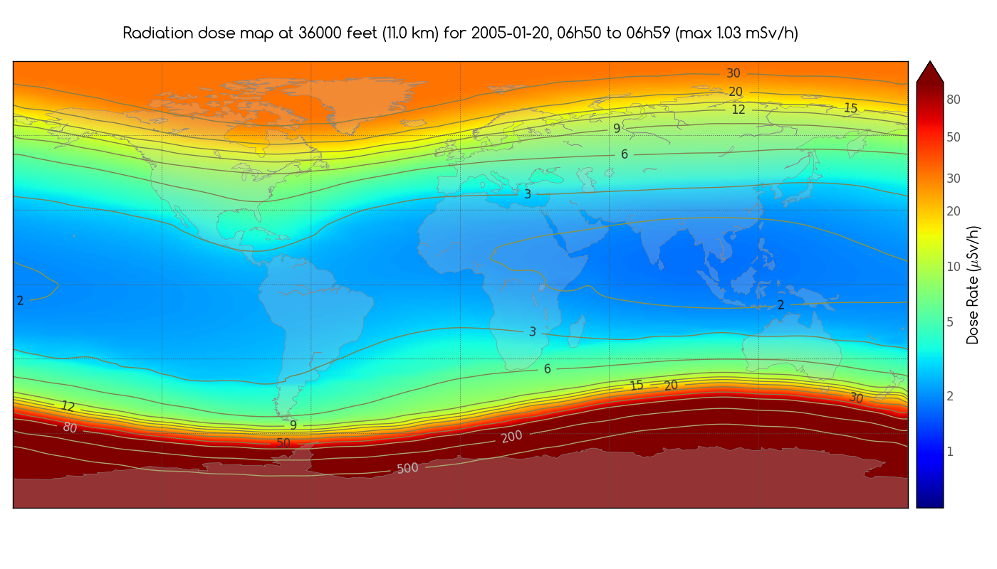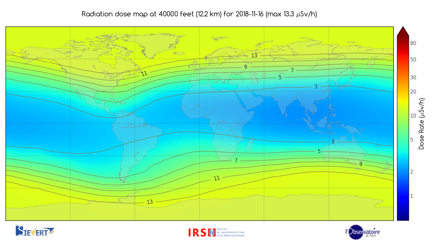 Ce type de cartes sera calculé pour l’aviation civile. La carte sera mise à jour une fois par jour en période solaire calme, mais au minimum une fois toutes les 5 minutes lors d’un événement solaire.